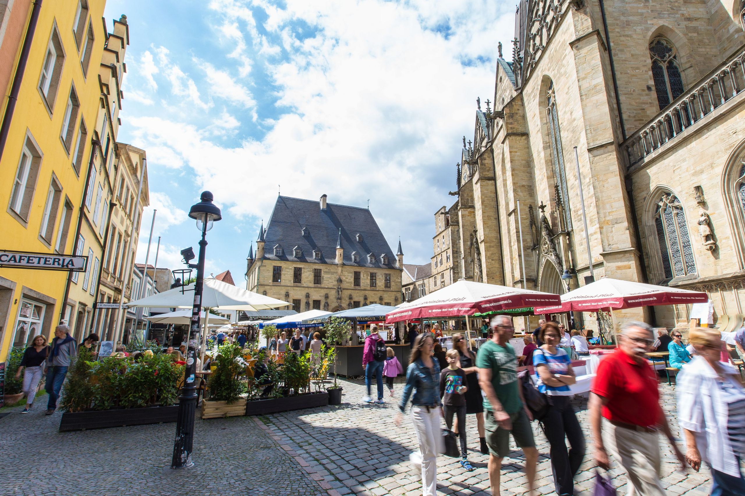 De ‘Maiwoche’, het stadsfeest van Osnabrück in mei, is jaarlijks een van DE highlights. Tussen verschillende podia, culturele voorstellingen en culinaire belevenissen is er vermaak en afwisseling voor het hele gezin. In de stad is sowieso veel moois te beleven op het gebied van muziek en cultuur, bijvoorbeeld bij de Schlossgarten Open Air en in de cultuurnacht. Een bezoek aan de dierentuin van Osnabrück is altijd geweldig, met of zonder kinderen. Net als een bezoek aan de jaarmarkten, die het hele jaar door plaatsvinden.
